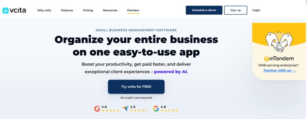 Vcita is an online business management and client engagement system designed to help industry newcomers grow. The software is a no-brainer for appointment-based businesses, as it automates client bookings, reminders, and payments. For example, its appointment booking feature allows clients to book services online 24/7