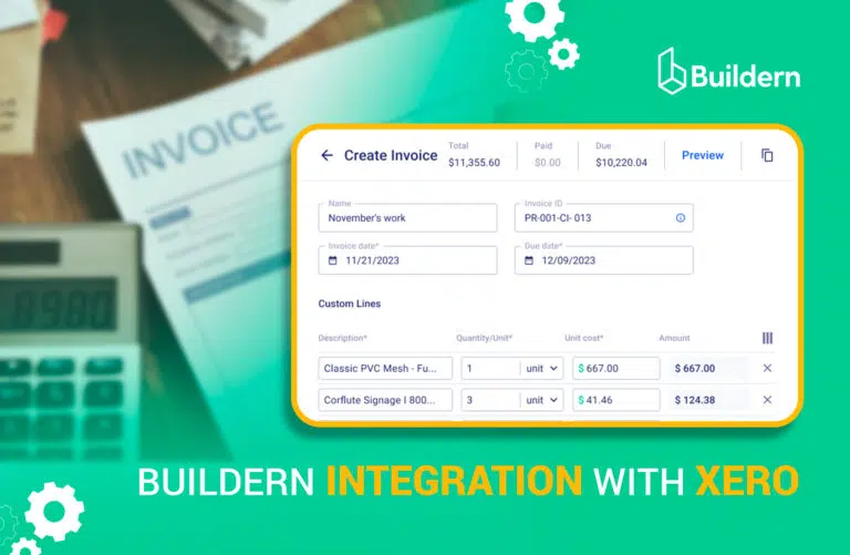 All information can be easily pulled from Xero and is further visible both on Xero and Buildern. Pairing invoicing tools with Buildern’s project management workflows creates a smooth connection between the contractor’s usual workflow and accounting. As a result, no detail is omitted.